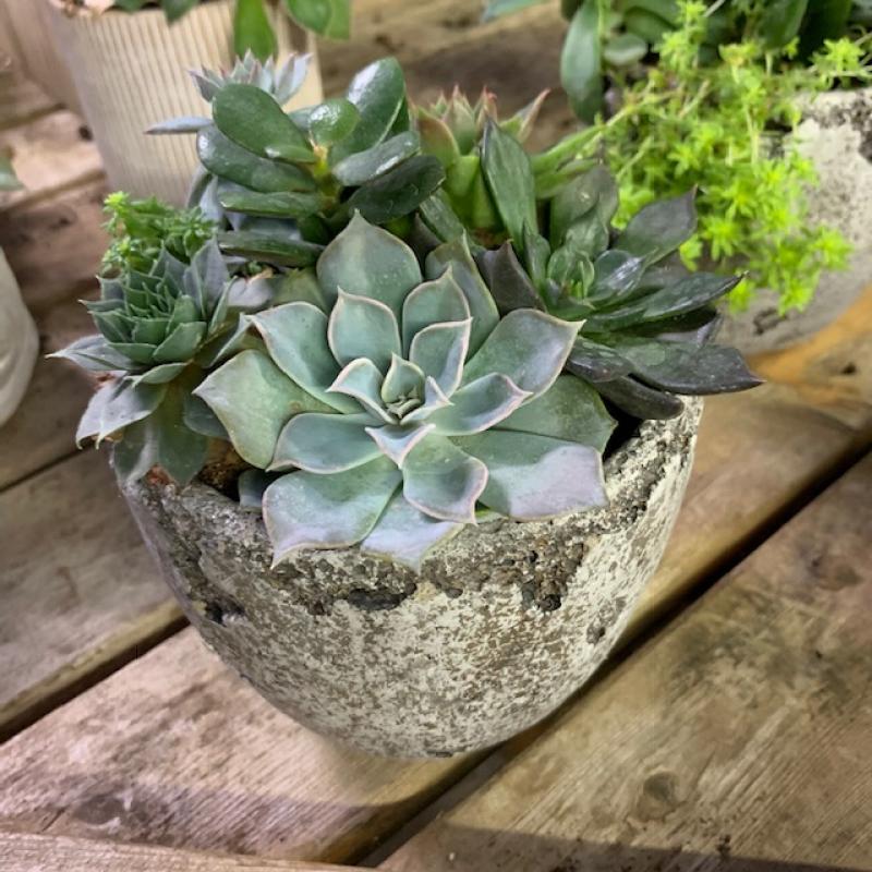 Succulent Cement Round Distressed 5"