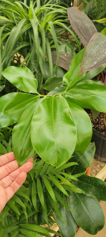 Philodendron goeldii, also known as Thaumatophyllum spruceanum, is a unique and eye-catching tropical plant with long, finger-like leaves that radiate from a central point. This growth pattern gives it a dramatic and somewhat spidery appearance. The leaves are a deep, glossy green and can grow quite large, adding to the plant's tropical appeal.