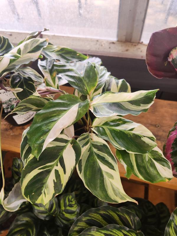 Calathea White Fusion is a stunning variety of Prayer Plant known for its unique and eye-catching foliage. The leaves are a beautiful blend of white, green, and sometimes even lilac or pink, creating a marbled and almost ethereal appearance. Like other Calatheas, its leaves move throughout the day, adding to its captivating charm.