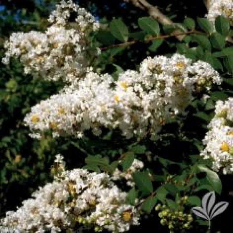 Spectacular clusters of pure white, crinkled flowers will delight throughout the warm summer months. The attractive peeling bark provides winter interest. A wonderful dwarf crape mrytle that serves as an excellent large shrub or small tree with a weeping form, rich fall color, and excellent mildew resistance . Deciduous.