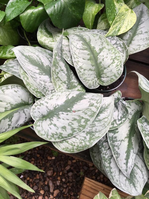 Pothos Satin, also known as Scindapsus pictus 'Argyraeus', is a captivating vining plant with heart-shaped leaves that shimmer in the light. The deep green foliage is adorned with silvery-gray variegation, giving it a satiny appearance. This easy-care plant is a popular choice for hanging baskets or climbing up a moss pole.