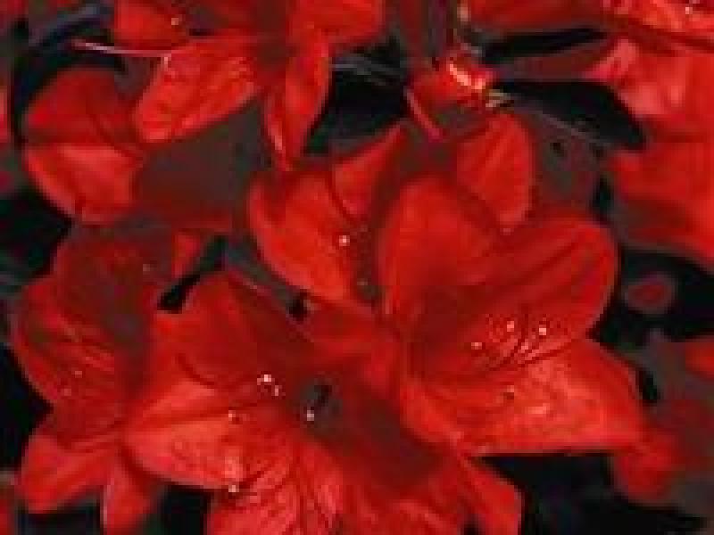 Blazing red blooms contrast nicely with the dark green foliage, putting on an attractive show.