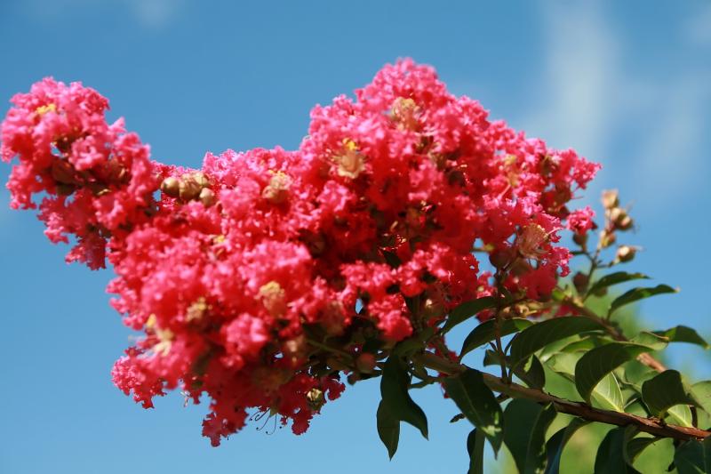 A small deciduous tree that produces a profusion of crepe-like coral-pink flower clusters. The bright green summer foliage develops exquisite orange-red coloring in the fall. Smooth, mottled, light cinnamon brown bark adds year-round interest. Wonderful for use as a large shrub to accent the landscape or as a specimen or street tree.