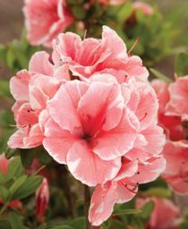 The unique blooms of Autumn Sunburst are coral pink with white ruffled edges and bloom profusely in spring, summer, and fall against compact dark green foliage.